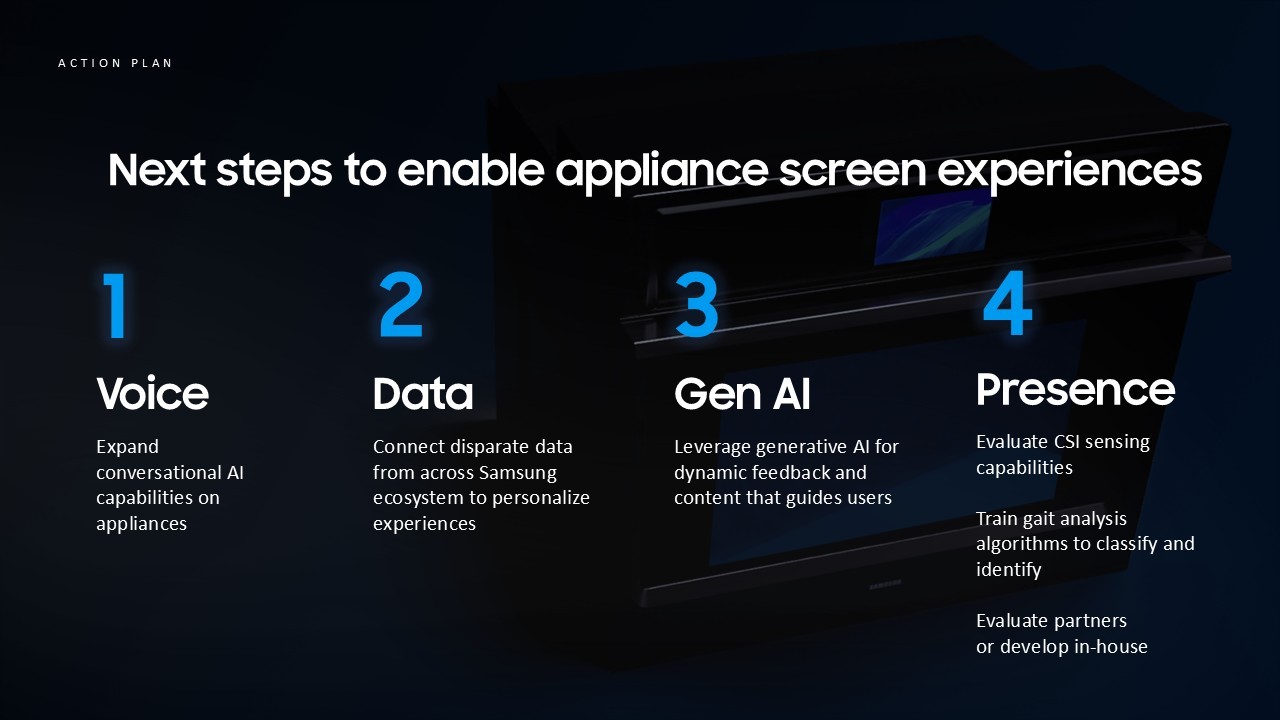 가전 스크린을 스마트 홈 전체의 역량을 확장하는 촉매제로 정의하고, 데이터와 AI를 기반으로 한 성장 모델을 제안했습니다. 보이스, 데이터 분석, 생성형 AI, 존재 감지(Presence) 기술을 결합하여 가전이 스스로 학습하고 진화하며 생태계 내에서의 영향력을 넓혀가는 액션 플랜을 수립했습니다. 이를 통해 가전의 물리적 기능을 풍부한 경험으로 전환하고, 연결성을 통해 더 큰 비즈니스 가치를 만들어내는 전략적 토대를 완성했습니다.