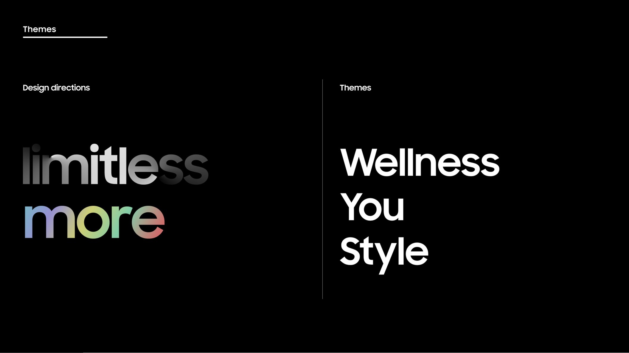 디자인 방향성을 'Limitless'와 'More'라는 두 가지 핵심 테마로 나누어 다채로운 시각적 경험을 설계했습니다. 'Limitless' 테마에서는 자연의 유연한 움직임과 빛과 그림자를 활용한 입체적인 텍스처를 통해 깊이 있는 심미성을 구현했으며, 'More' 테마에서는 과감한 색상과 대담한 형태, 예상치 못한 인터랙션을 통해 사용자의 개성을 생동감 있게 표현하는 솔루션을 선보였습니다.
